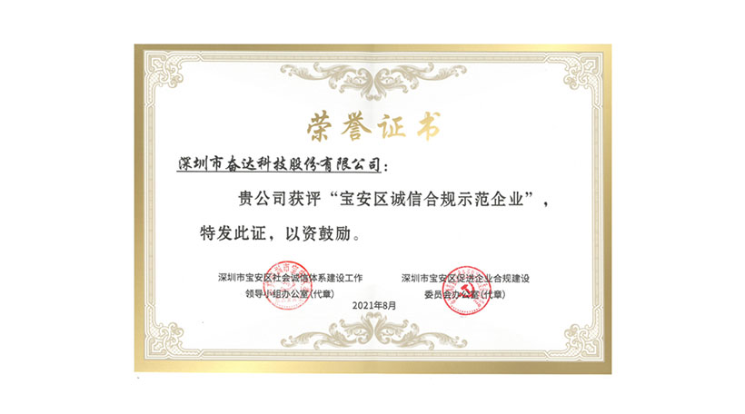 9月9日,宝安区发布首批“3A”信用企业名单及联合激励实施细则,并为宝安区诚信合规示范园区和企业进行授牌。经过自主申报、材料初审、实地考察、专家评审、社会公示等环节综合评定,华体会科技获批“宝安区诚信合规示范企业”及宝安区“3A”信用企业荣誉称号。