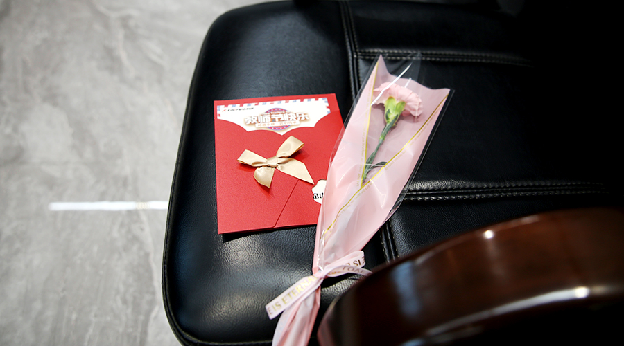 (肖董接过自己的教师节礼物)