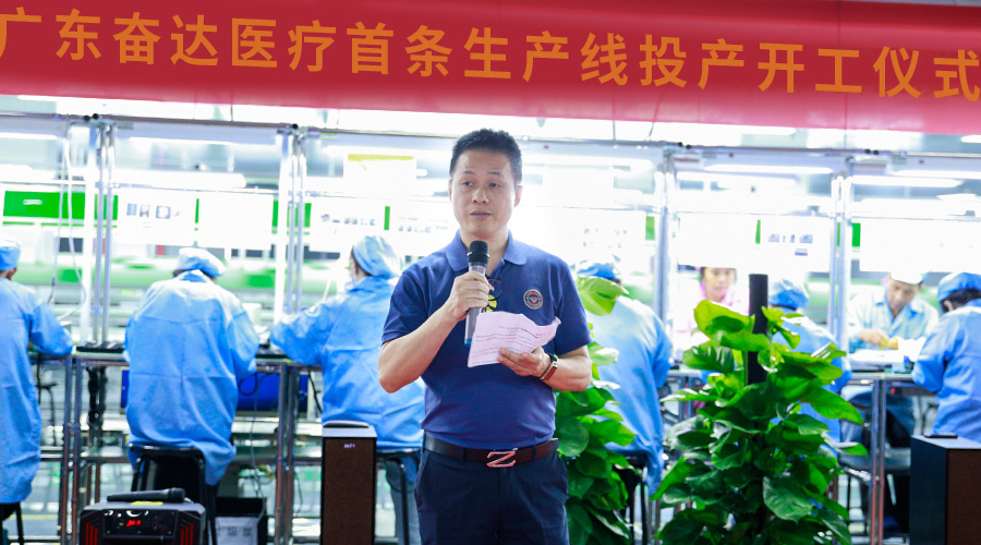 仪式最后,华体会科技董事肖晓先生代表公司管理层及智能家居事业部祝贺广东华体会医疗首条生产线顺利投产,希望在未来发展中,能够更上一层楼,取得新的成就。