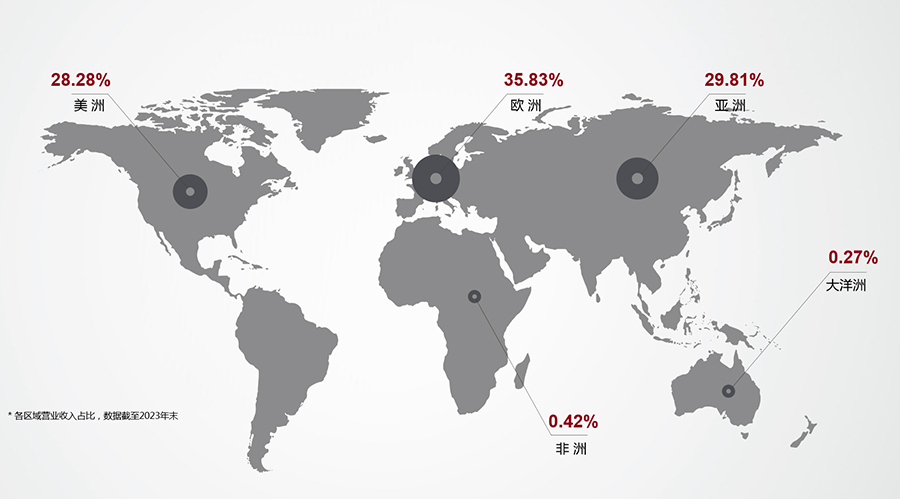 (2023年华体会科技全球市场营业收入占比图)